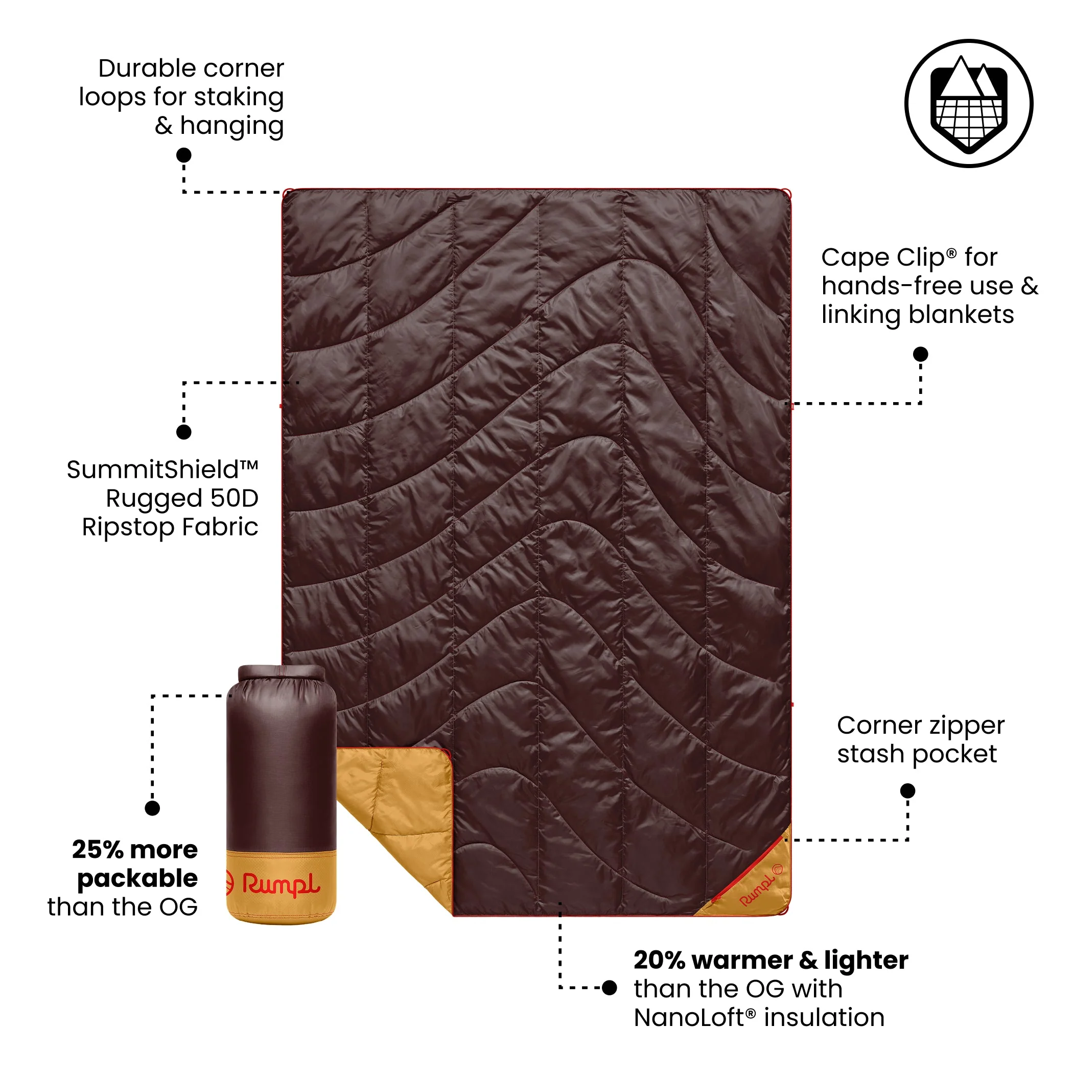 True to its name, The Backcountry Puffy is engineered to excel in portability, space-efficiency, and performance. It features aSummitShield™ ripstop inner liner for weather-resistance on the inside, VersaWeave™ 30D poly shell on the outside, and upgraded NanoLoft® Insulation for improved warmth, durability, and easy maintenance. Our warmest, toughest, and most capable adventure blanket to date.